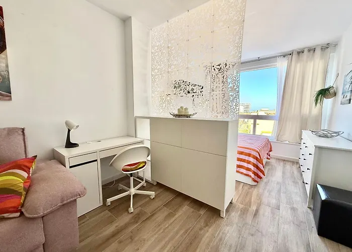 寝室1室のSan 65 - Apartamento Reformado - Centrico - 2 Min Centro - 700 M Playa - Wifi トレモリノスはサン・ミゲル通りとLobo Parkから徒歩でたった5分に位置し、都市の景色を望めます。